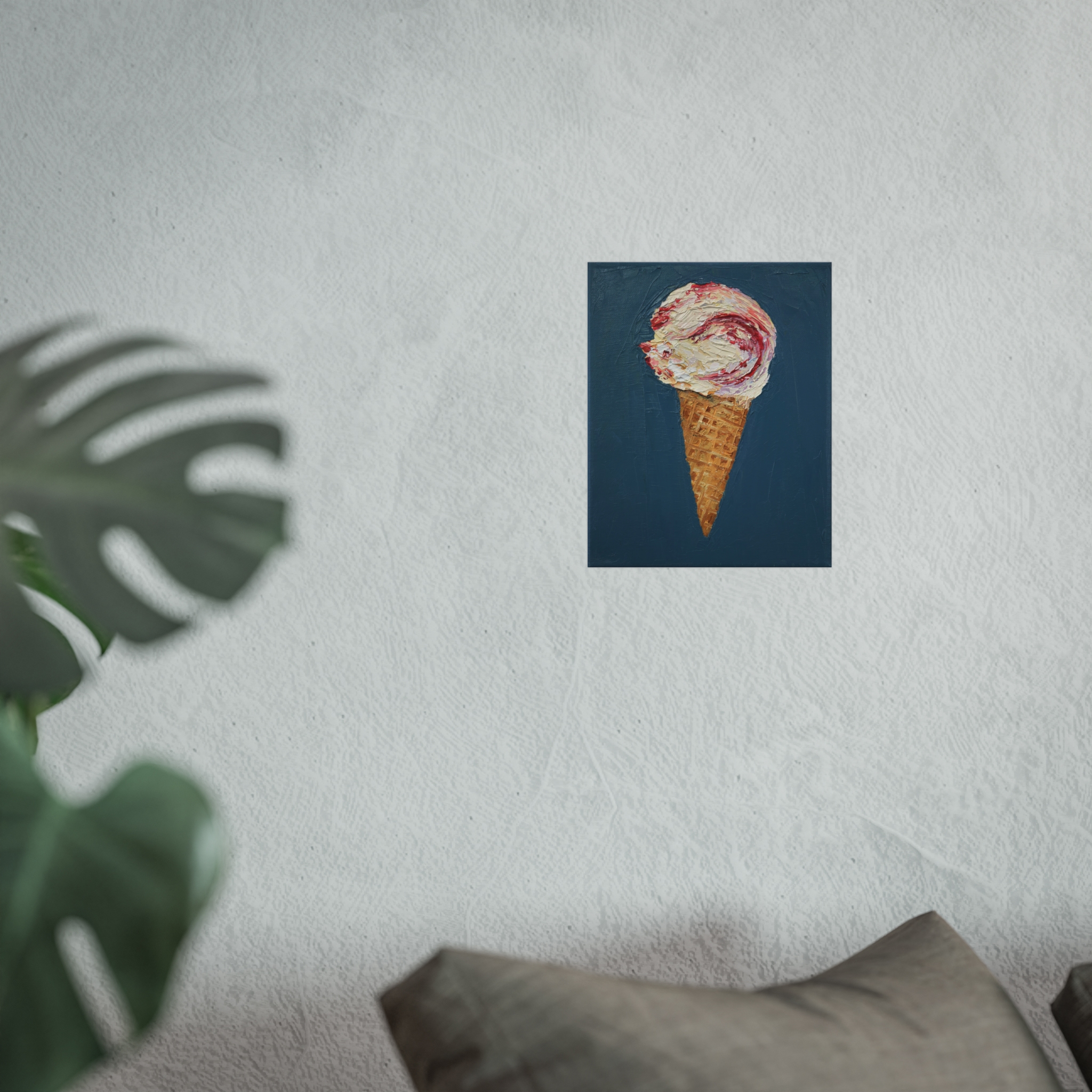 This is a high-resolution print of one of my Ice Cream Cone oil paintings. The paper has a smooth, matte surface, printed with the Giclée technique for crisp color fidelity on par with Fine Art printing standards.